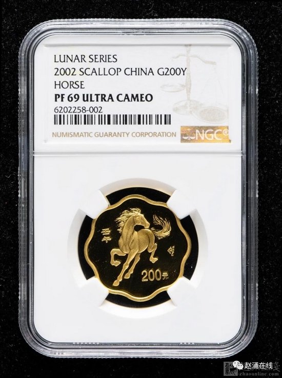 2002年壬午马年生肖1/2盎司梅花形精制金币一枚