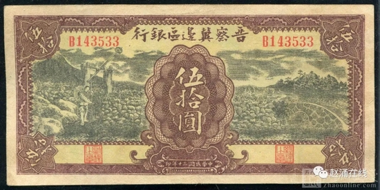 民国三十年晋察冀边区银行伍拾圆一枚