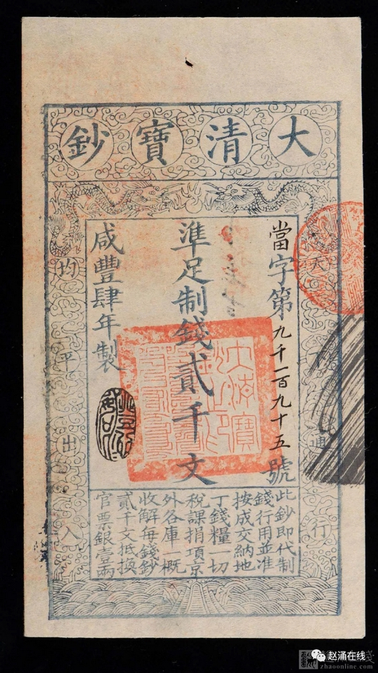 咸丰肆年大清宝钞贰仟文一枚