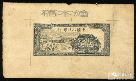 第一版人民币伍元绘制版稿一枚