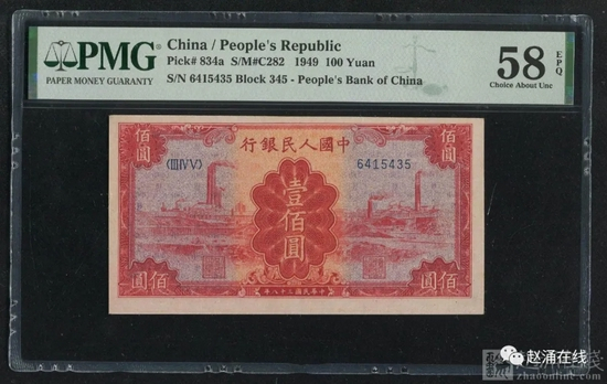 解放区板块最近半年大热,本月有多枚精品成交,华中银行壹佰元毛像2.99万成交,晋察冀伍拾元石头桥八品2.49万成交,长城银行伍佰毛像冠军分数2.38万成交,再创新高;内蒙古人民银行壹万元八品2.33万成交。