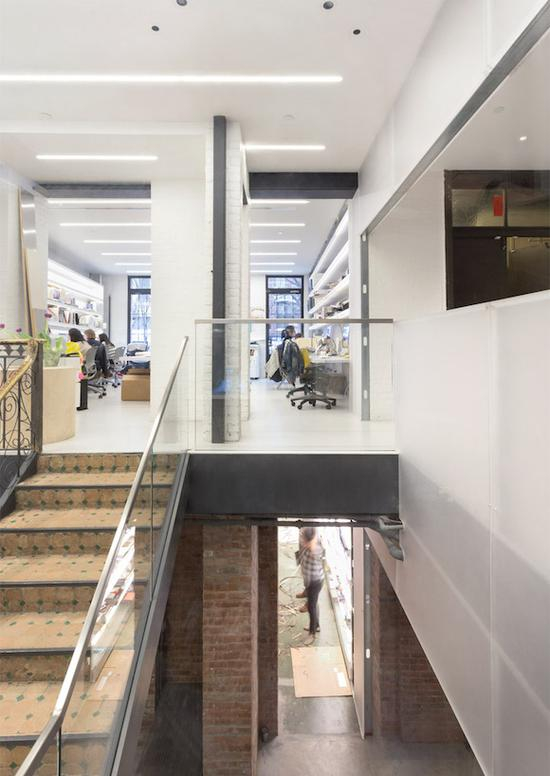 在与蔡国强沟通后,OMA 知道这个在西式老建筑里重生的工作室应该具有更多的东方风情,于是它一方面通过在整个空间的中心位置建造一个中式小中庭,并在中庭两侧设置玻璃窗和半透明胶质墙以增加内外联系,从而让整个办公空间在不知不觉中染上了中式庭院的美。