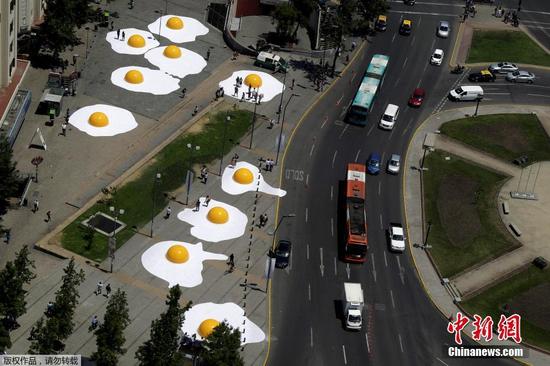 碎鸡蛋艺术品亮相智利 妙趣横生引市民驻足 中国新闻网 中国新闻网官方账号 2016.11.1208:52 关注 当地时间2016年11月9日,智利圣地亚哥,荷兰艺术家Henk Hofstra的作品“空中掉落的鸡蛋”展出。