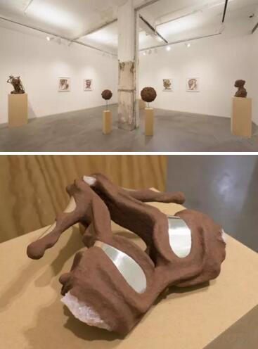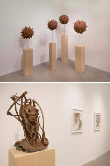 在展出的新作中,穆图继续运用新颖的材料创作,探索人与自然环境的关系。作品由有机物质组成,包括在东非不同地区搜集得来的矿物岩石、肥沃泥土、植物根部和枝叶。布满球状病毒似的人体雕塑,象征着各种代表再生或破坏力量的生物现象。