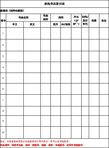 本艺术节竞赛单元只接受网络报名,请参加主竞赛单元的报名者在邮件的标题注名:主竞赛单元+姓名,填写文件末尾提供的报名表并与作品一同发送至大赛组委会邮箱: