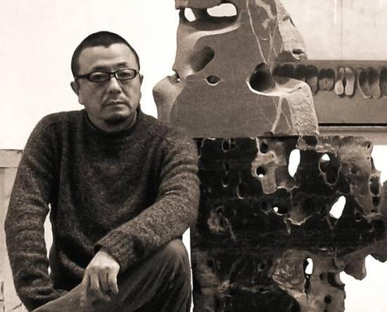 王:我这件《见山》作品还是以我个人的风格为主,通过中国的汉字“山”形,来意向地表达了一种“山”的意境。作为一个现当代的艺术品,我们在中国目前这种城市化的改造当中,它的意义我认为是很显见的,因为作为一种传承也好,作为一种发展也好,作为一种创新意义也好,“山水”文化一直在延续着,但是“山水观”、“山水”一切都在变,我的《见山》作品就是在这种文化背景下进行创作的。我愿意把我自己的作品,把我今天的“山水观”更多地介入到社会的整个文化的发展的进行当中去展现。我运用了工业革命以后的工业切割,来对太湖石进行改造,从意境上和意味上,用一种现代的方式,对传统文化进行改造,通过我对太湖石的切割来突显出社会的对自然的干预,对自然的压迫。