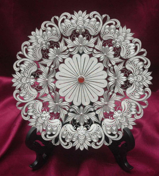 荣誉背后是李开琼的艰辛和酸苦,每一件饰品的设计制作都要经历过无数个的日夜才能成为精美的作品,开琼的执着又不被人理解,而她却说“对于现代化发展来说,已经有很多能够替代手工的机器,且更加美观、细腻,我觉得一件最精美的作品,没有用心去雕琢,去打磨,去用双手触摸是少了温润的,最好的作品也缺少灵气,所以她不畏惧,因为手工银饰是一项文化遗产,是侗族民族文化的隗宝,需要传承需要弘扬,如果没有人去做,这项手艺就会逐渐消失,我就要将纯手工艺的传承当作一种事业来做,不仅仅是爱好和经济效益,更重要的是责任和使命的担当”,一个弱小的女人用这样的胸怀孤独的走在创业的路上,让我心生敬佩和怜爱之心,很想为她做点什么,又不知道怎么做,我想我能做的只有默默的支持。