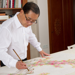 他半生均扎根于江南,攻画四十余载,底蕴深厚的江南水土塑造了何百明的文人风骨,上海兼容并包的海派精神则深深影响着他的创作风格。何百明擅于在传统工笔、写意的基础上进行大胆实验,吸收西方绘画在构图、用色、光线上的诸多技法,洋为中用,不断探索花鸟画的更多可能,作品也呈现出丰富多变的面貌。