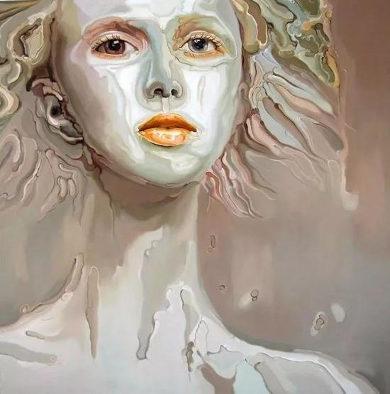 陈芸用有些凄然的笔调绘制了一批或着强颜欢笑、或者若有所思、或者茫然失落的,满是伤痕、似乎正在空中消解的《面孔》,这些面孔显然是她与自己曾经极力回避的个人真实、直接的生活体验的激情遭遇。