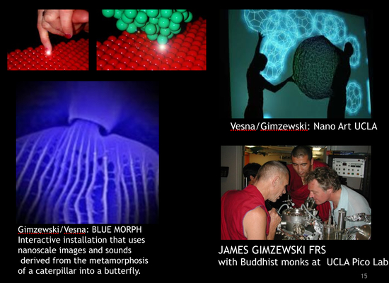 他强调了“纳米级”的时代还没有来到,我们正在走向构造的机制是纳米级的,这是其对未来的企图,我们的现实是多变的。我们现在不仅仅有虚拟现实,VR,还有其他的现实,什么是新生科智艺术以及它的特质?