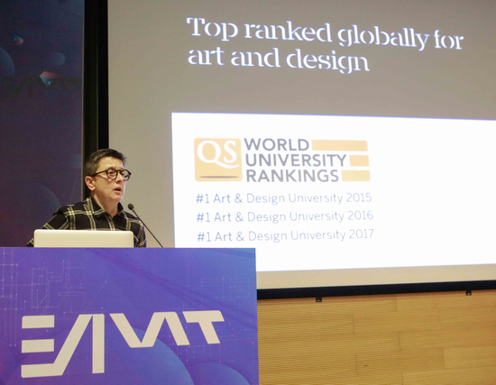 在讲座中,戴尔叙述到,英国皇家艺术学院已经有180年历史了,学院渐渐开始进行社会、文化、经济方面的一些转型,现在已经开始了越来越多的融合,移动通讯技术,还有多样性环境科技,框架。其学院也非常注重用户使用,比如说希望有一些新的反馈,社会文化工业发展对我们产生的影响。她所在的院系主要想要了解更宽泛框架,数码时代怎么沟通。