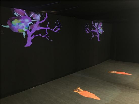 整个展览共有六个展区,包含五十多件作品,除了爱情转盘以外,还有互动荧光绘画、“12星座”、“无限生长”视频、“我和大世界”及包含了多条人生箴言(毒鸡汤)的“迷宫”。