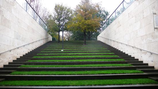 很有创意的草坪式的台阶,打破了多个台阶的僵硬感,使一个多阶层台阶瞬间就有了生命的气息。而且很有美感和艺术感。