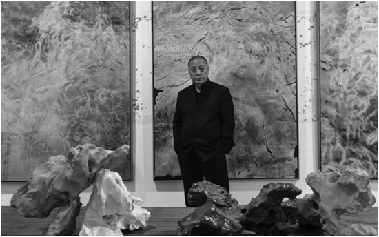 我画山、画水,画石头和泥土,究其实质,还是想从大天地、大山水中,画出那一片消逝久远的故土。我相信中国古人画山水的终极目的,非为了山、也非为了水,而是置身于一个没有精神信仰的庞大族群之中,百般无奈,横涂竖抹,山不是山、水并非水,让一切生命“尘归于尘,土归于土”,所以,我从一个研究山水画的文化切入点,寻觅中国人文精神最终解答,巴门尼德说“一切是一”,因为“一”不仅仅是一,它可以是一切,遂为一种形而上的论证方式。中国山水作品,不仅是绘画,成为了生命图景。