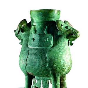 青铜器流行于新石器时代晚期至秦汉时期,以商周器物最为精美。双羊尊是商代晚期的容酒器,它是古代青铜艺术最杰岀的珍品之一。此器高45厘米,筒形口,尊身由两头背部相连的羊组成。柔和素雅的铜绿、奇特优美的造型、纷繁瑰丽的纹饰和厚重拙朴的质感,赋予了此件双羊尊无穷的艺术魅力,也揭示了先秦时期的铸造工艺、文化水平和历史源流。此件双羊尊现藏于大英博物馆。