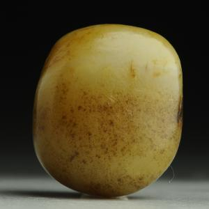 真籽料在河水中经千万年冲刷磨砺,自然受沁,它会在质地软松的地方沁入颜色,在有裂子的地方深入肌理。这种皮色是很自然的,叫做活皮。它的颜色浸入玉内有层次感,过渡自然,皮和肉的感觉是一致的。皮上的颜色应是由深入浅,裂隙上的颜色应是由浅到深。其实好玉是不长皮的,即有,也是星星点点,或在细小的裂子里。