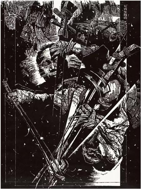 郝彦杰《应河亮书之三》--91.5x68cm--黑白木刻