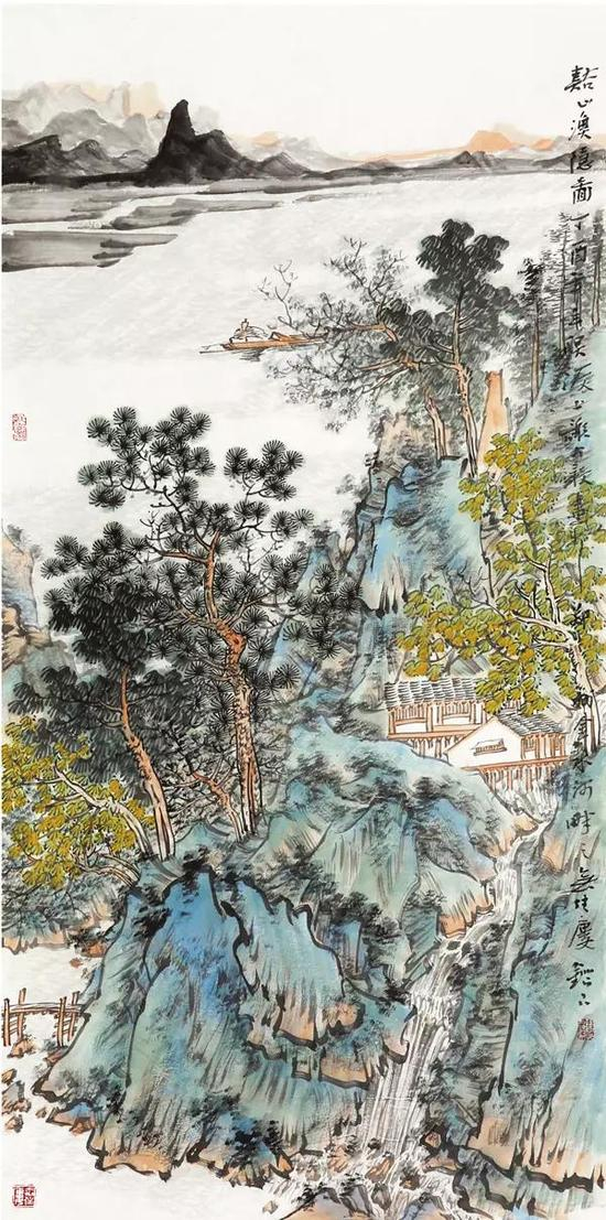 谢冰毅《溪山渔隐图》 136x68cm 中国画
