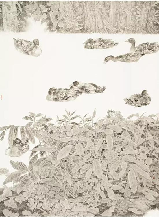 张毅敏《晚春戏溪》 180x96cm 中国画