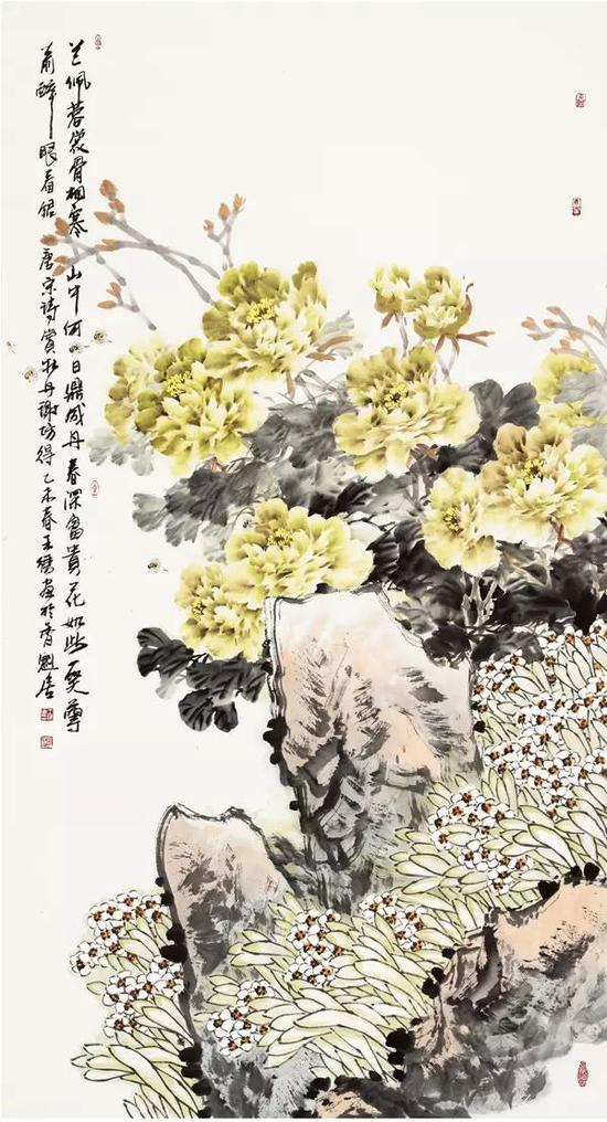 王绣《兰佩富贵醉春图》 180x96cm 中国画