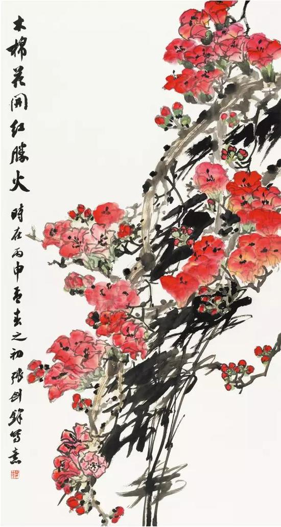 张剑锋《木棉花开红胜火》 136x68cm 中国画