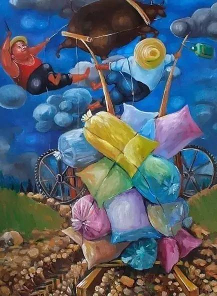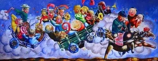 一个被称为中国“毕加索”的农民画家熊庆华,迅速蹿红了网络,其实这位艺术家从2010年就开始在网络上为人所知。他的画面都是乡村景象,站在拖拉机上务工的人、小时候玩的弹珠,画面中人人物一改中国传统书画的稳重娟丽,变得俏皮而失重,色彩鲜艳而有趣。