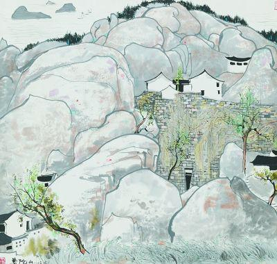 “吴家新装”重在形式美。吴冠中以一双慧眼去发现自然中的形式美,往往出人意表,却又入乎情理。沟壑连绵的黄土高原,在他眼中犹如一群猛虎,画名干脆就叫《老虎高原》;水乡的老墙,被他看作一张饱经沧桑的老人的脸;云遮雾绕的玉龙雪山,犹如希腊神话中出浴的女神苏珊;泰山上屈曲虬龙的“五大夫松”,他仿佛看到那两千年不散的忧愤松魂,恰如罗丹的雕塑名作《加莱义民》……他在20世纪70年代末80年代初就撰文宣扬“形式美”与“抽象美”,强调要尊重艺术的形式规律,而中国画坛不重视形式规律久矣。他以率真的性情与无畏的胆识,创造性地贡献出了一种走在时代前沿的崭新风格,成为中华民族在文化转型期的一座艺术高峰,令人仰止。
