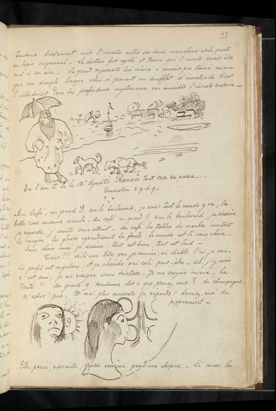 位于英国伦敦的考陶尔德美术馆日前收入了一件法国后印象派画家保罗·高更(Paul Gauguin,1848—1903)去世前两个月完成的长篇手稿,其中包含了高更的约30幅原始图画,提供了一条审视其创作过程的新途径。手稿的文字部分在呈现高更关于艺术的见解之余,揭露了他对于和梵高分道扬镳的叙述。这件手稿原件在过去的一个多世纪里几经易主,最近才进入了考陶尔德美术馆,预计将于明年春季向公众展出。